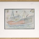 Sailing ship and orchard, c. 1935-37
