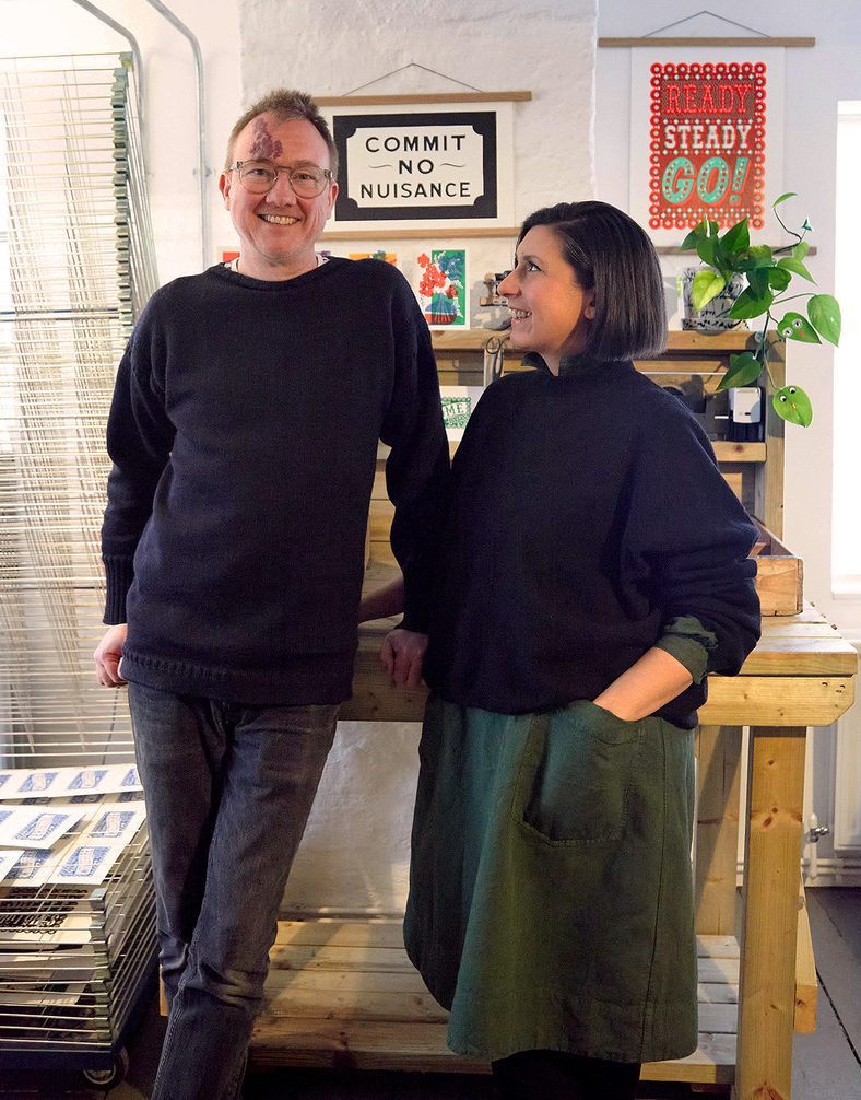 We are Pressed & Folded, a creative studio based in Somerset. We design and publish greeting cards and linocuts that bring together typography, illustration, colour and fun! Our background is in textile and surface pattern design, and that foundation continues to shape, and colour, everything we do. This is now our eleventh year and we’re still very much inspired to create unique paper goods that we enjoy looking at and hopefully others do too.